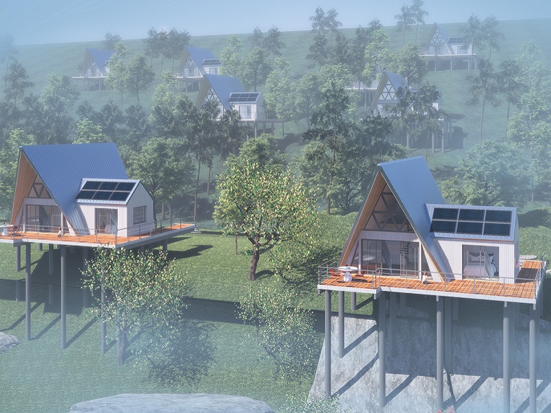 集术装配房屋的美既能和康养旅游地相得益彰,又是一块活的绿色建筑宣传招牌,对于旅游康养项目的发展有着良好的促进作用。